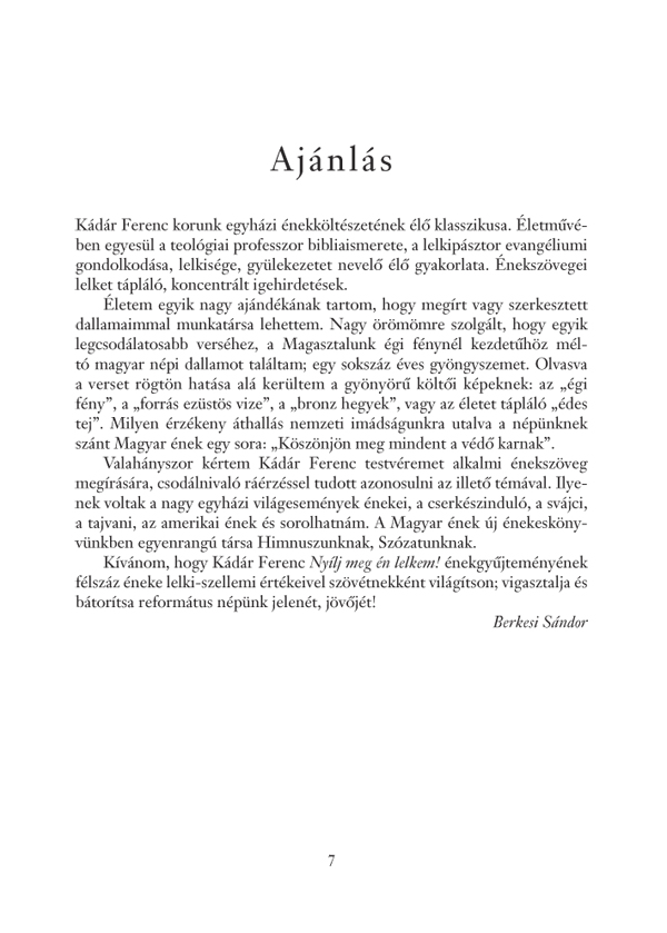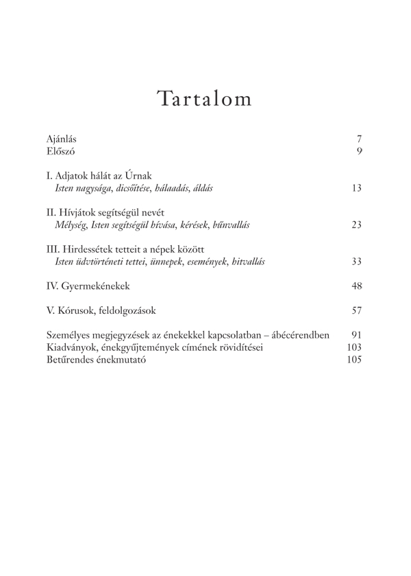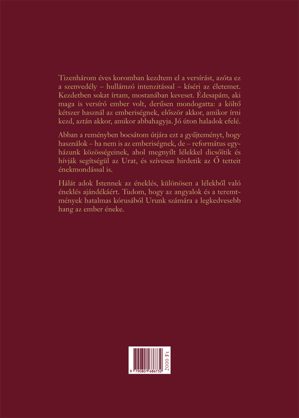 Abban a reményben bocsátom útjára ezt a gyűjteményt, hogy használok – ha nem is az emberiségnek, de – református egyházunk közösségeinek, ahol megnyílt lélekkel dicsőítik és hívják segítségül az Urat, és szívesen hirdetik az Ő tetteit énekmondással is.